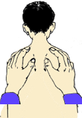 3、揉肺俞300次、分推肩胛骨100次。