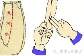 打马过天河20~30遍。在天河水的位置上,蘸水边拍边吹气,水干了再蘸水反复做几遍。